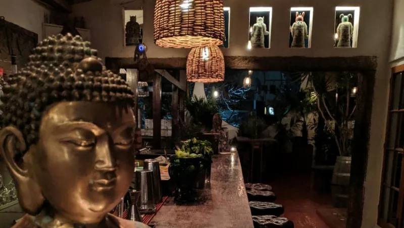 En ella se encuentran plasmados con la misma estética (aunque en un estilo más selvático) otros objetos y obras del estilo. Podemos encontrar estatuas zodiacales de la cultura China, posicionadas en nichos de ambos lados de la barra, que ofrece por cierto la misma carta y diversidad en cócteles y atención. Los elementos orientales predominan en este sector, destacando las cortinas enhebradas con objetos que hacen referencia al horóscopo chino, simbología y el mismo Kama Sutra retratado en pequeñas piezas.