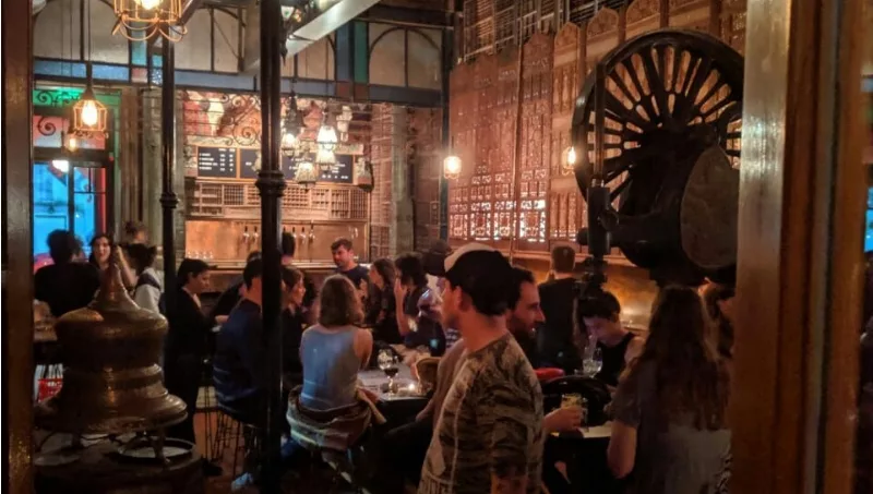 En el renovado patio, un sector que se encuentra a pasos del ingreso al bar, se encuentra la nueva barra de cervezas artesanales. Manteniendo un espacio más informal y relajado, el patio presenta antiguas mesas de trabajo de carpintería, a modo de barras, que guardan la historia de todos los momentos transcurridos en su superficie.