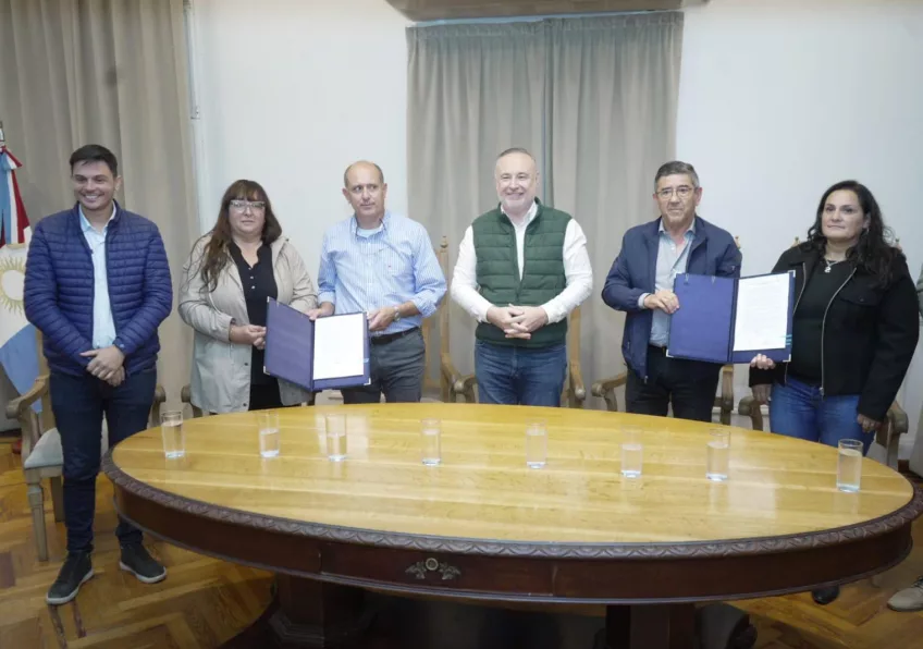 Accastello suscribió el convenio junto a representantes de cuatro supermercados con asiento en la ciudad: La Coope, Grupo Gesta, Megacompra y Supermercado ISSYS.
