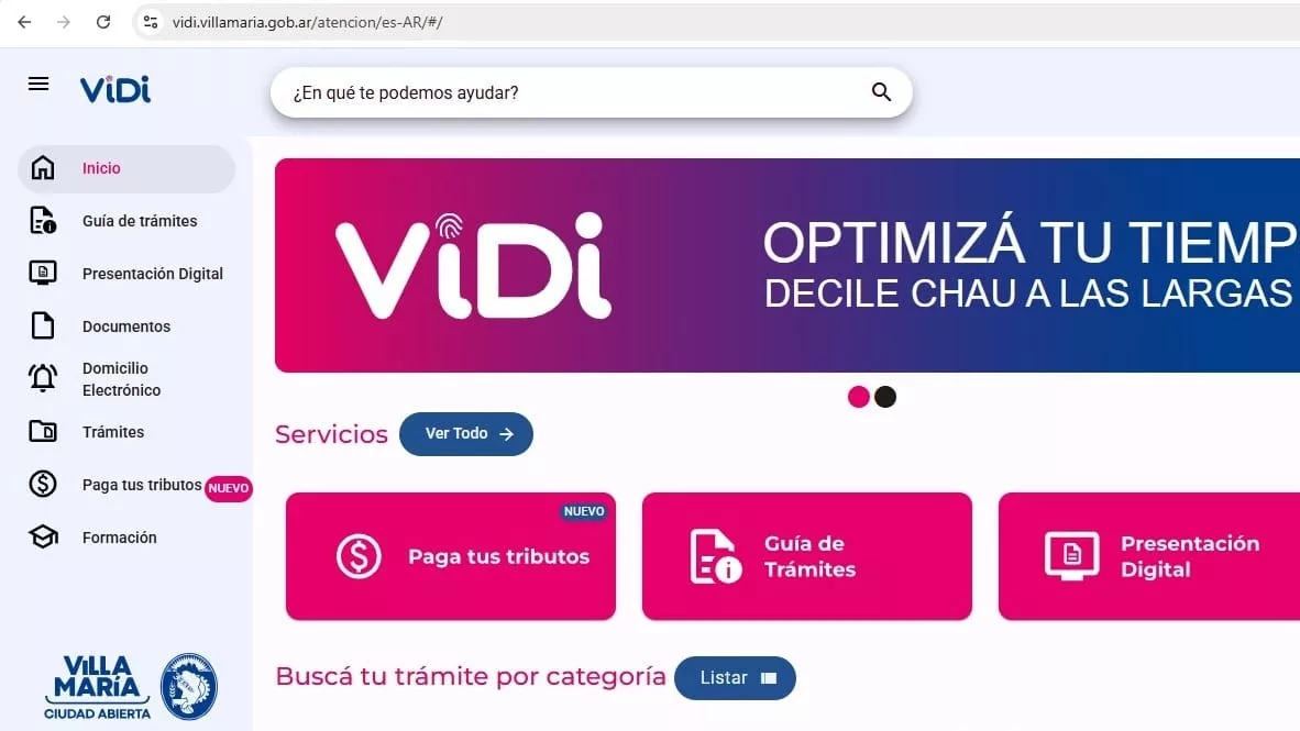 Disponible las 24 horas, todos los días del año, a través de la web oficial (www.villamaria.gob.ar), ViDi se convirtió en el canal central para interactuar con el Estado local sin necesidad de concurrir a oficinas físicas. Desde octubre de 2024, el sistema incorporó de manera progresiva más de 100 trámites digitales, ampliando su alcance y reduciendo tiempos administrativos.