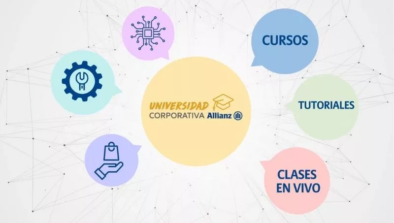 La Universidad Corporativa Allianz ofrece cursos, tutoriales y clases en vivo sobre sus productos, herramientas y circuitos de trabajo, además de eventos y charlas de actualidad.