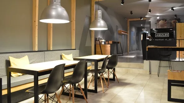 Tras el primer desarrollo en Nueva Córdoba (sobre Bv.Chacabuco), el segundo Aquiles Café cruza la ciudad para llegar a zona norte (sobre Av. Rafael Núñez), donde ya se trabaja en un local con capacidad para recibir 250 personas, además de su propuesta "take away".