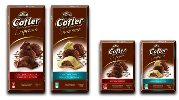 La multinacional de Arroyito renovó la imagen de Cofler con un nuevo packaging que unifica la identidad visual y da a la nueva presentación un color marrón uniforme con detalles dorados y una banda de color que permite diferenciar cada una de sus variedades.