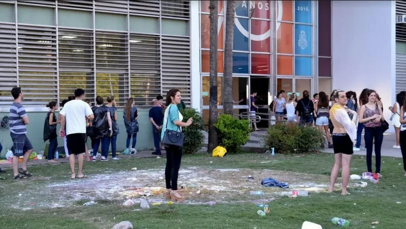 En promedio, y por citar un ejemplo, en Ciencias Económicas se reciben cerca de 800 estudiantes anualmente, es decir que se destinan (por año), en promedio, 5.200 litros de agua y $ 150.000 en recursos para limpieza, recupero de parquización y pintura.