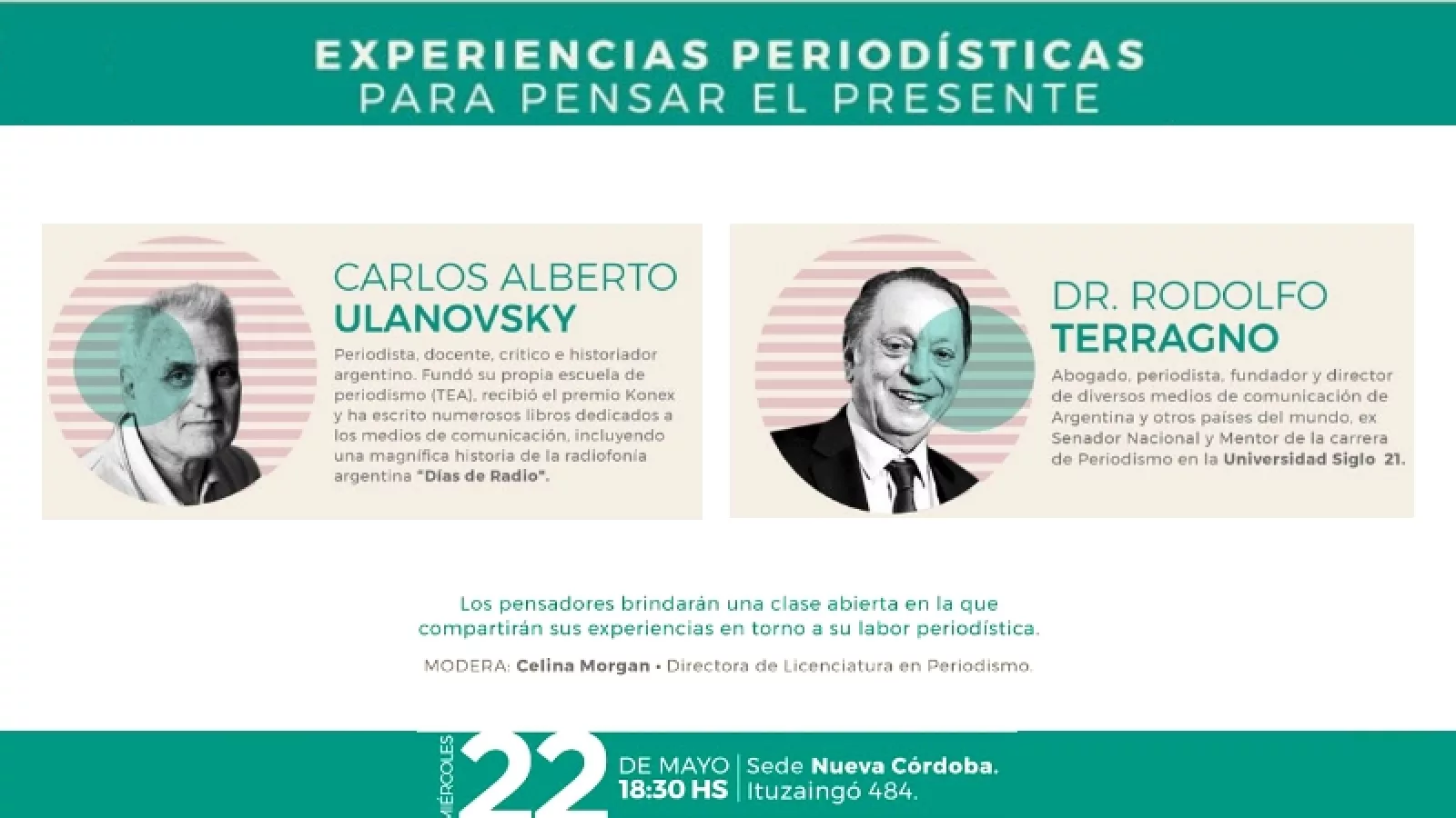 Los disertantes serán Carlos Alberto Ulanovsky y Rodolfo Terragno.