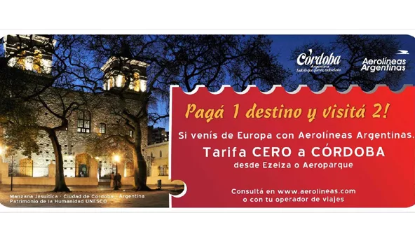 ¿En qué consiste? Todos los pasajeros extranjeros que lleguen al país por el Aeropuerto Internacional de Ezeiza o Aeroparque Jorge Newbery con vuelos originados en ciudades europeas tendrán tarifa cero en el ticket para el tramo Buenos Aires- Córdoba. ¿Qué tul?