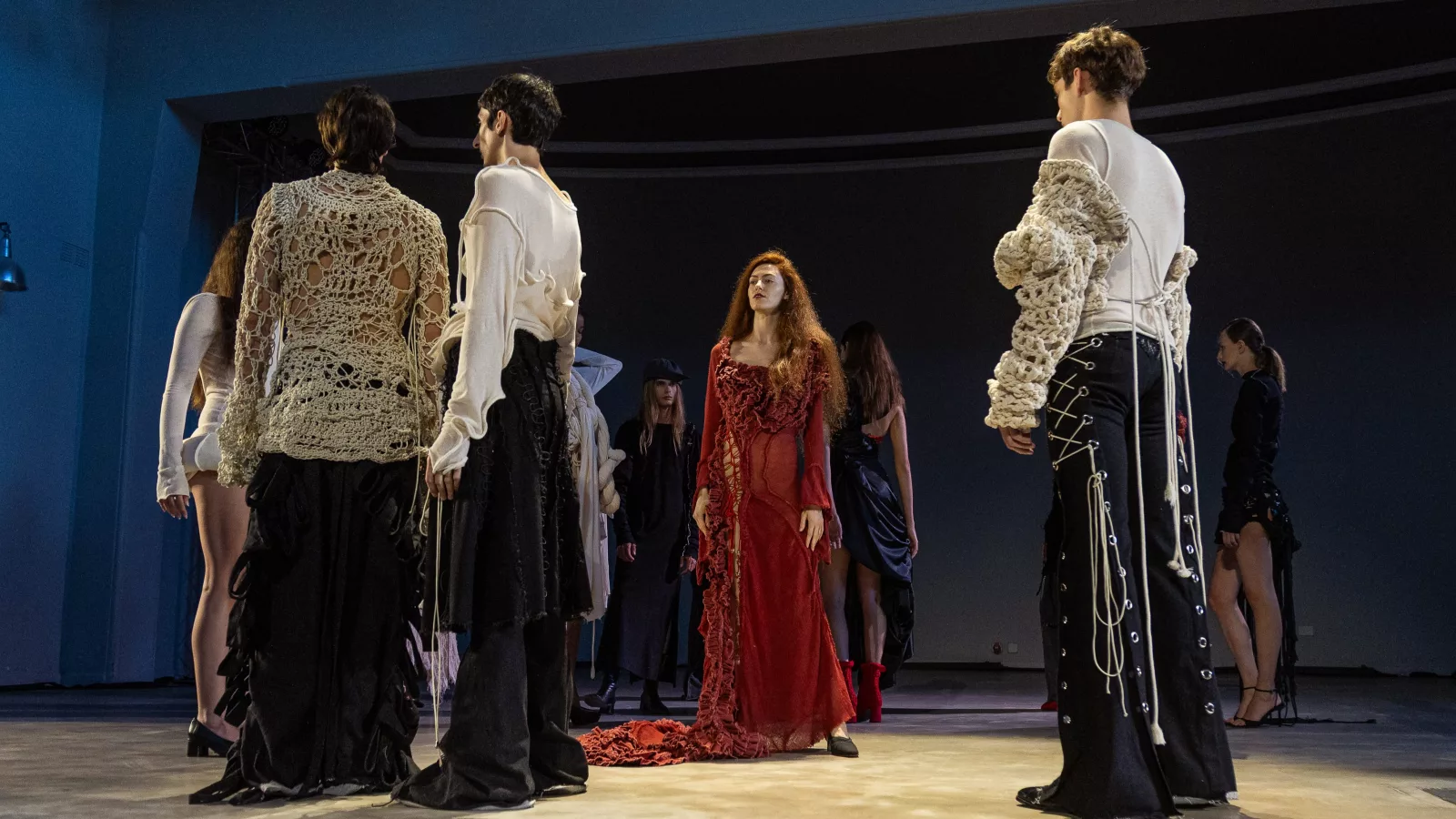 Inspirada tanto en las fiestas de quince como en rituales de paso precolombinos, la pasarela se organizó en 3 actos, cada uno evocando distintas etapas de la historia de la marca. Los looks revisitaron referencias icónicas de Bullbenny —sastrería experimental, volúmenes exagerados y texturas híbridas— reinterpretadas desde una mirada más contemporánea.