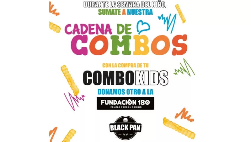 Black Pan presenta su “Cadena de combos”, una acción solidaria que se comenzó a desarrollar el domingo 18 y tendrá vigencia hasta el domingo 1 de septiembre. Por cada compra que se realice de uno de los nuevos Combo Kids, se donará otro exactamente igual a un niño de la Fundación.