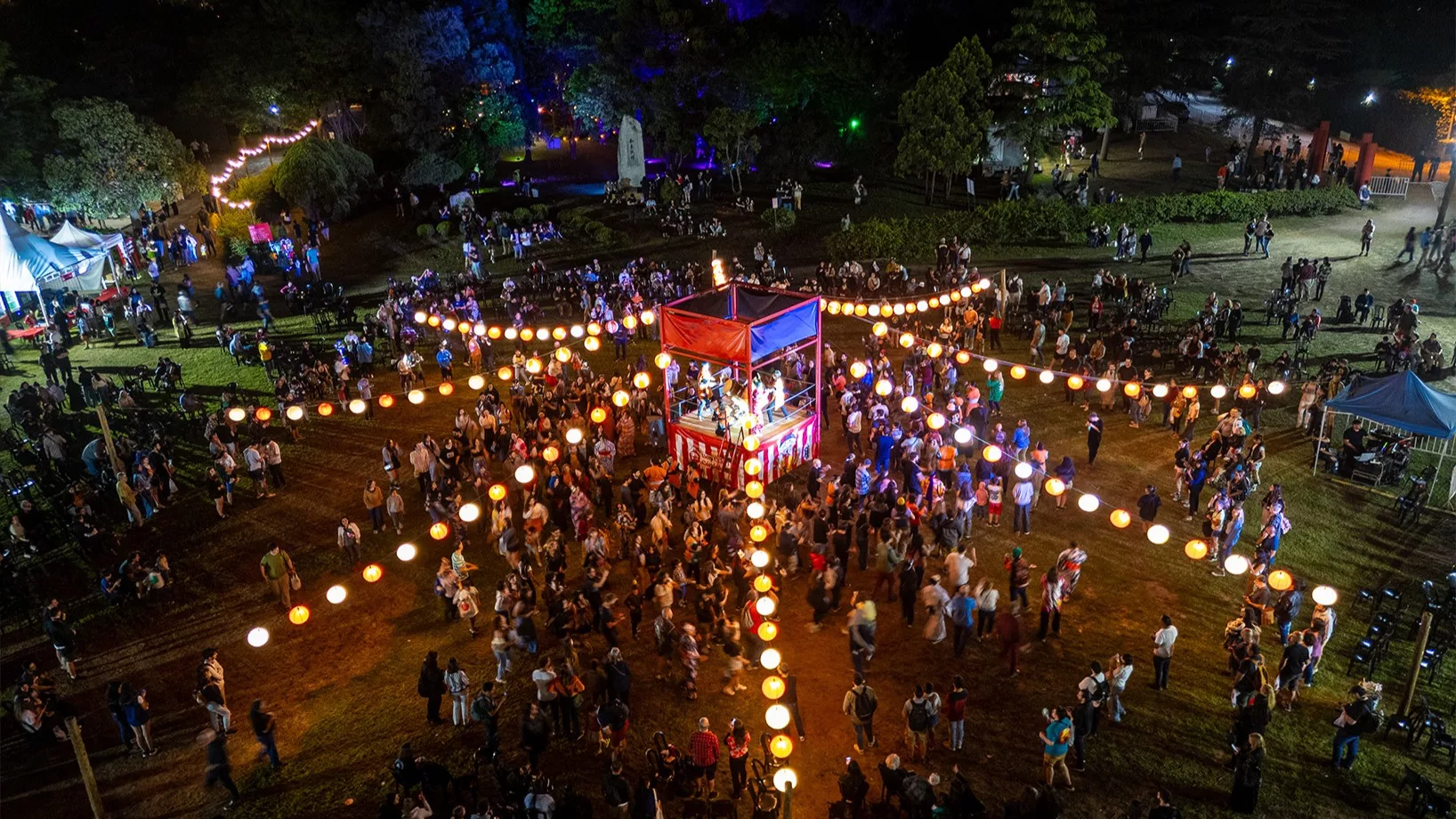 El Bon Odori es una festividad de origen budista que honra a los antepasados y a los seres queridos fallecidos. En Japón, la celebración incluye danzas alrededor de una torre central al ritmo de tambores tradicionales e iluminación con faroles de papel, práctica que también se reproduce en Córdoba.