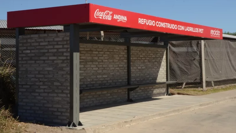 Por otra parte, la novedad es que Coca-Cola Andina tiene su refugio de colectivos hecho de ladrillos ecológicos. La garita fue construida con los ladrillos de materiales reciclables que fabrica la Fundación Eco Inclusión.