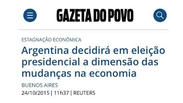 Carola Lorena Aciar / Curitiba, Brasil: "En el diario de la ciudad, Gazeta do Povo, ayer se pudieron ver artículos sobre las elecciones presidenciales, como "Adiós Cristina Kirchner", y también hubo comentarios de lectores donde se referían a que el gobierno estuvo encaminado a una dictadura comunista. En la tapa del diario de hoy tuvo su lugar; " Argentina debe tener una segunda vuelta feroz" debido a lo tardío en que estuvieron los datos se basaron en la boca de urna. Luego en versión digital llegó el articulo donde proclaman ganador a Scioli pero que hay segunda vuelta. Además, nose si vale comentar, pero cuento mi experiencia, no pude votar quise votar pero para ello el tramite en un poco burocrático, tenía tiempo hasta fines de abril para anotarme en un listado pero, a su vez para anotarme tenia que tener en mi DNI argentino el domicilio de Brasil, llegue en marzo a Curitiba por lo que no me entere a tiempo para realizar ese tramite y por consecuencia anotarme para votar. Mi inquietud es que sigo siendo ciudadana Argentina, tengo mi casa allá y sigo pagando mis impuestos pero no puedo votar por más que quiera. Como yo hay varios casos, será por eso que en la lista del consulado de Argentina había solo 134 personas habilitadas a votar?"