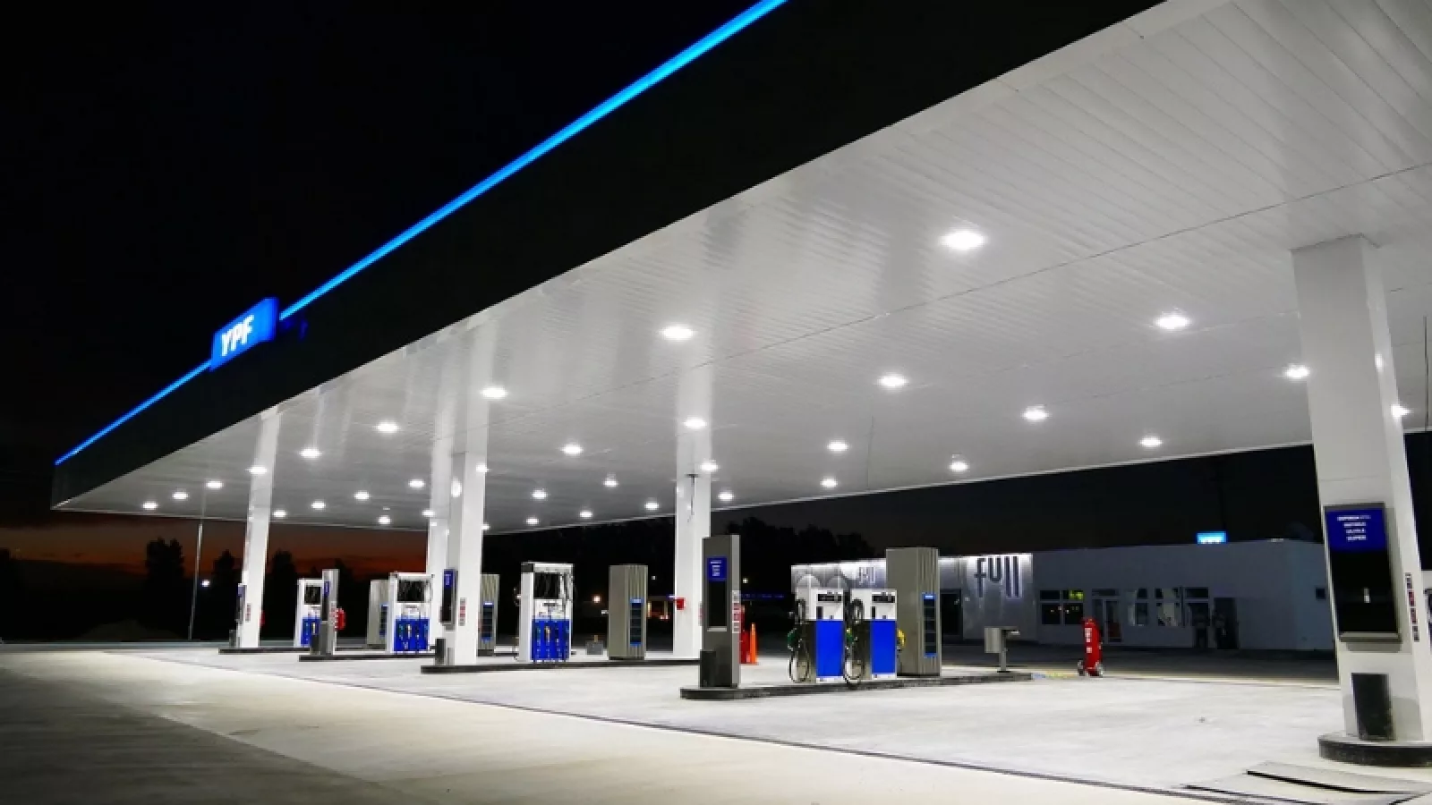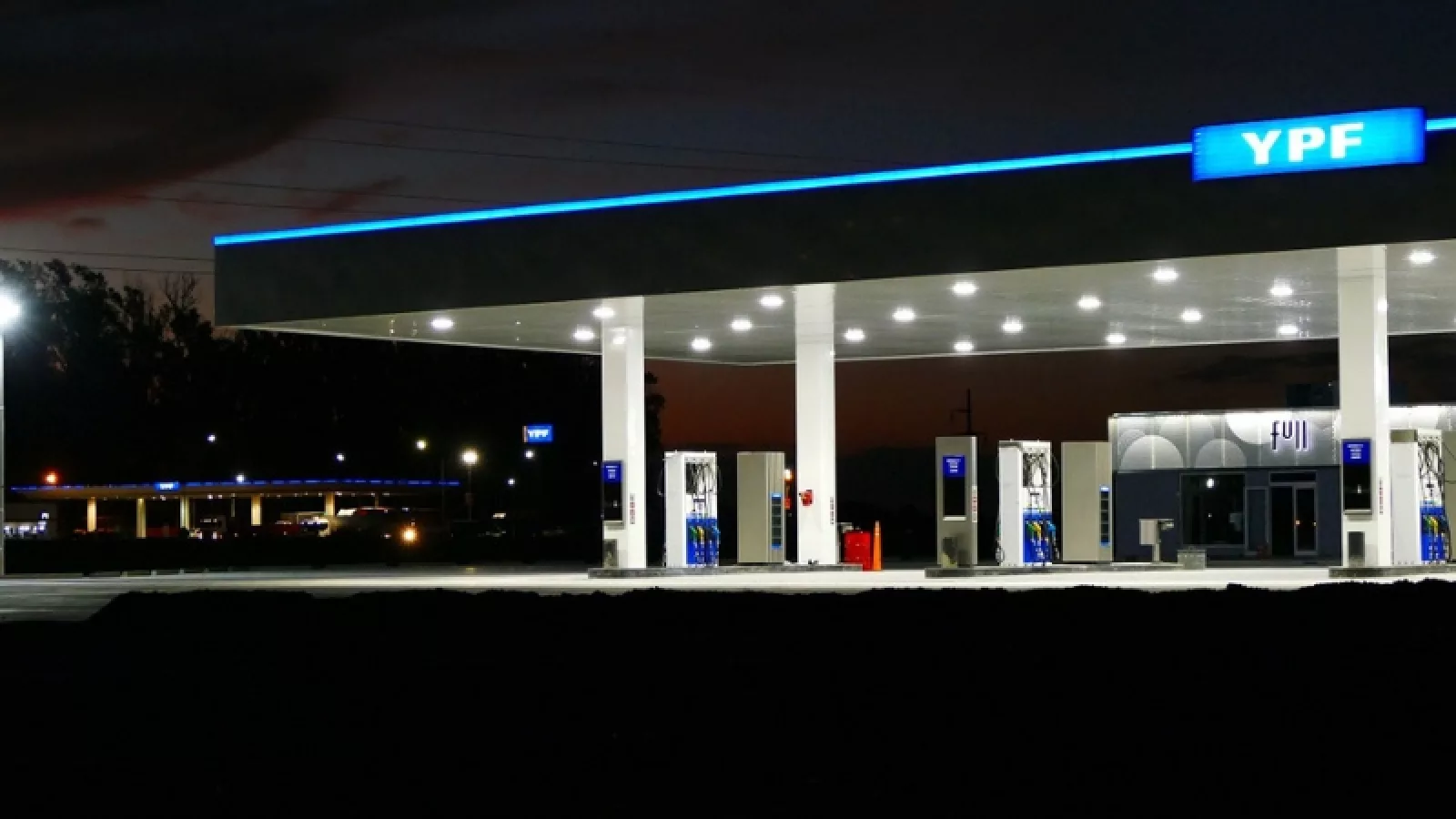 Cuenta con 10.500 m2 de hormigón donde se montaron la playa de despacho, entrada y salida de vehículos, estacionamiento, la tienda YPF Full, vestuarios y duchas.