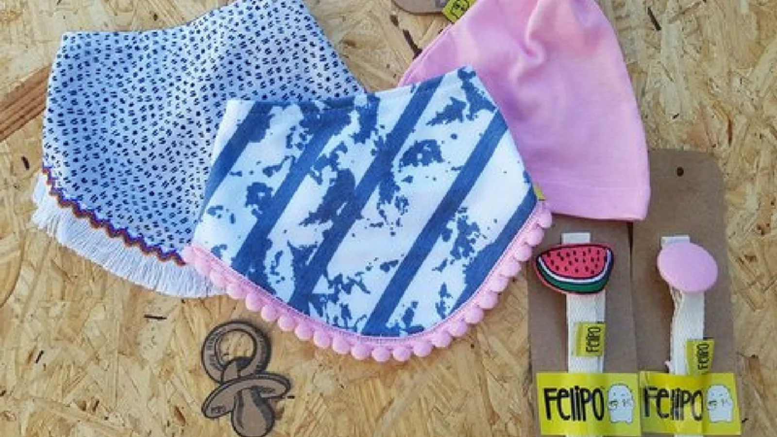 La línea de productos Felipo se compone de baberos de diferentes formatos, tamaños y diseños, babitas para la lactancia, porta chupetes, toallas y toallones, gorritos, entre otros productos necesarios para la primera infancia.