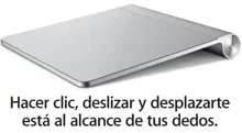 El Magic Trackpad es multitáctil, funciona de manera similar el pad de una Mac Book, aunque su tamaño es mayor y se conecta a la computadora por Bluetooth. Por supuesto permite mover el puntero por rozamiento y clickear con un ligero toque.