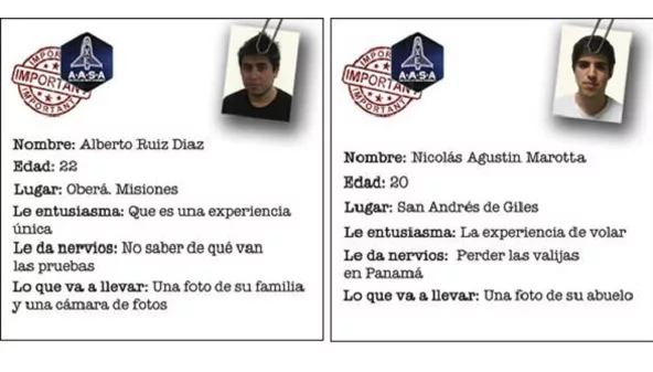Nicolás Marotta (20), de Misiones, y Alberto Ruiz Diaz (22), de San Andrés de Giles, recibieron entrenamiento espacial durante tres días junto a reclutas de todo el mundo y ellos son parte del grupo de 23 ganadores que viajarán al espacio gracias a Axe a bordo de una aeronave del Space Expedition Corporation (Space XC).