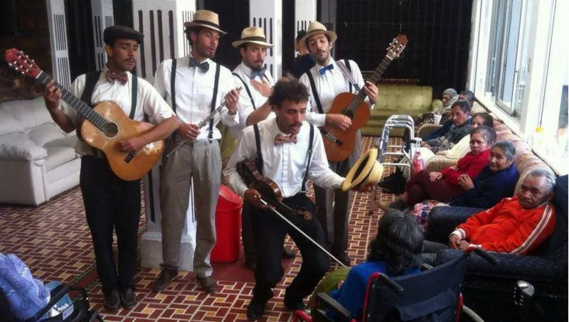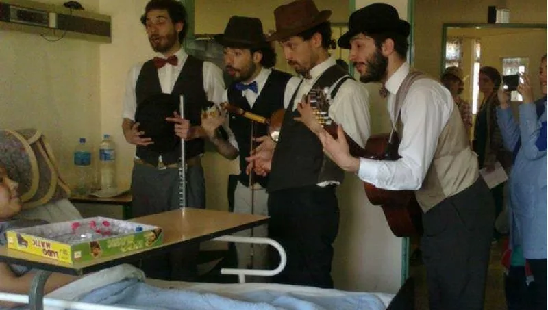Empezaron tocando en la plazoleta frente de la Basílica de la Merced (que ellos bautizaron Coconut Arenas) con la idea de cantar serenatas y de paso, ganarse unos mangos. Pero fueron contratados por un geriátrico privado y lo que generaron en los ancianos los transformó. Así comenzaron con las presentaciones ad honorem allí donde no podían pagarles y como consecuencia, la idea altruista de hacer algo solidario dio lugar a una cuestión más política, de demostrar que el arte no es solamente un show sino una herramienta. (Por ejemplo, en el ámbito de la salud, puede ser muy útil para mejorar la calidad de vida del paciente).