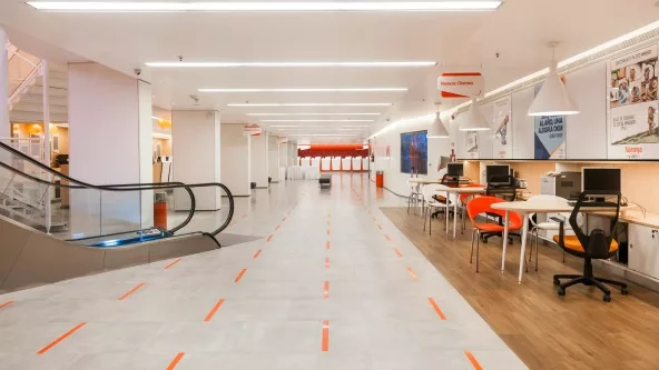 Tarjeta Naranja reabre las puertas de su emblemático local de 9 de julio 265 y sorprende con nueva imagen e infraestructura para que sus clientes se sientan “como en casa”. La remodelación incluye tanto la optimización del sector de atención como la incorporación de livings para espera y tecnología para auto consulta dentro y fuera del local, todo estratégicamente distribuido en un espacio de 750 m2.