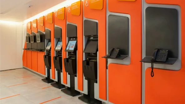 Esta sucursal es la primera en Córdoba capital en estrenar una imagen más cálida y luminosa, que refleja la cultura y los valores de la compañía. El diseño, a cargo del reconocido estudio Atelman / Fourcade / Tapia (AFT), continúa la línea de “Casa Naranja”, que por su arquitectura y color vibrante ya se ha convertido en un ícono para la ciudad. El mobiliario, el equipamiento y la señalética general de Subte siguen esta estética de formas suaves y amigables. En materia de sustentabilidad, el cerramiento vidriado móvil de la fachada permitirá un uso más eficiente de la climatización.