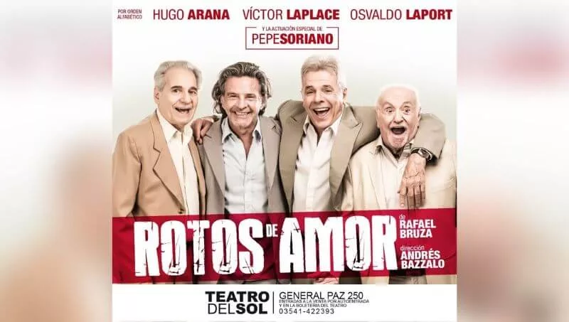- La comedia “Rotos de amor” interpretada por Hugo Arana, Víctor Laplace, Osvaldo Laport y Pepe Soriano.