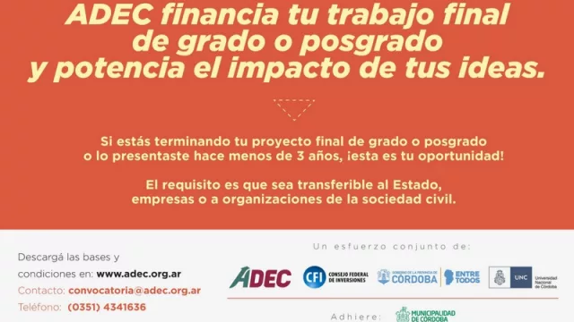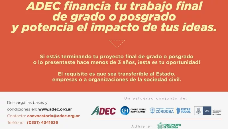 La 6o convocatoria vence el día 07 de mayo a las 16.00 hs y los interesados pueden descargar la documentación en la página www.adec.org.ar.