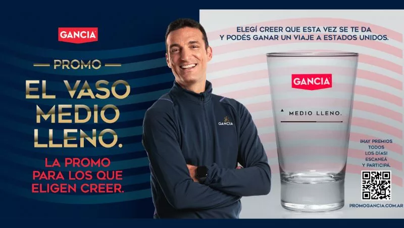 Bajo el lema "El Vaso Medio Lleno", Gancia invita a todos aquellos que eligen creer a participar en una promoción única que ofrece la oportunidad de ganar un viaje para dos personas a Estados Unidos. El premio incluye la experiencia de vivir el emocionante campeonato de selecciones y alentar a Argentina en las fases de grupos.