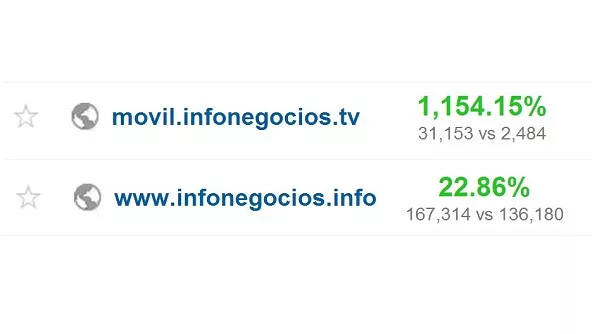 Pedimos perdón por el autobombo, pero estamos muy contentos y queremos compartir esta alegría con nuestros lectores. Es que el último informe de Analytics (de Google) nos dejó más que satisfechos: nuestra página tradicional (infonegocios.info) creció en el último mes 23% en relación al mismo período del año pasado y el sitio móvil (que estamos potenciando) multiplicó por 13 sus visitas.