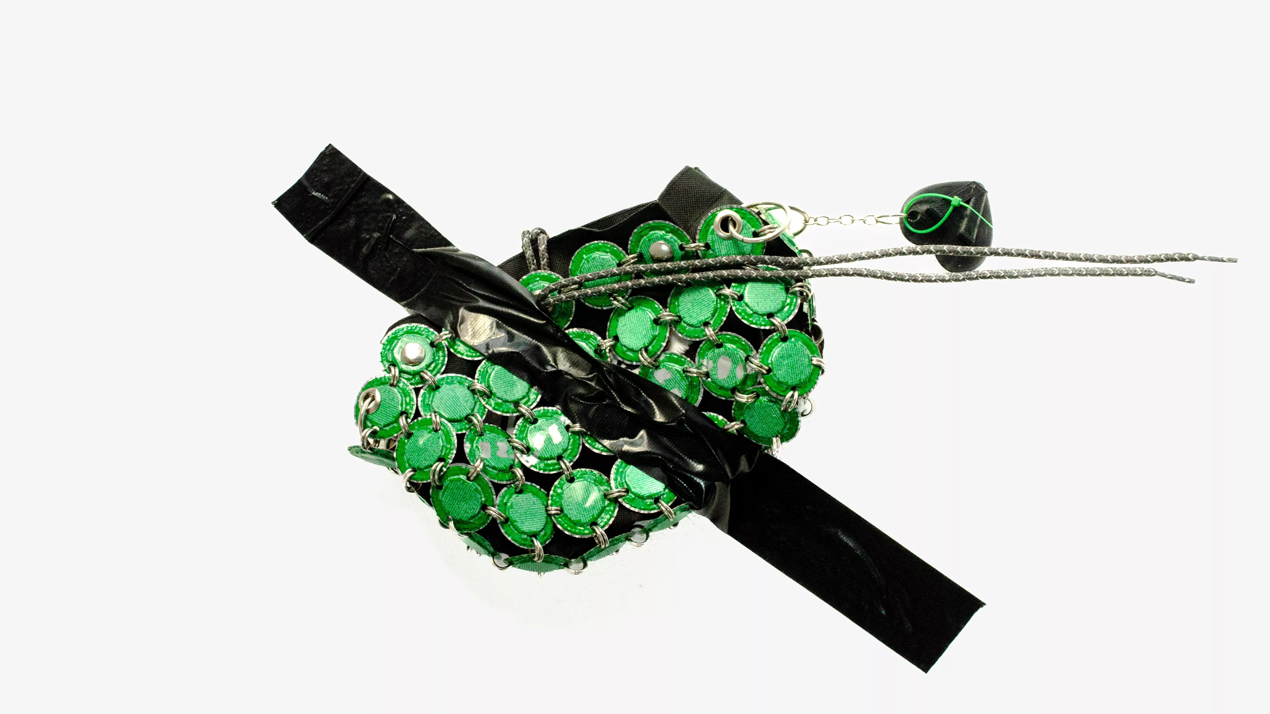 Nahuel estudió Diseño de Indumentaria en La Metro, y Varria nació como un trabajo práctico de la facultad. La consigna era crear un accesorio, y aunque no era necesario el uso de materiales reciclados, Nahuel se inspiró en los diseños de Paco Rabanne (reconocido por el uso de materiales poco convencionales como el plástico y el metal) y en su técnica de chainmail. Así, en 2021 creó el primer bolso Magno.