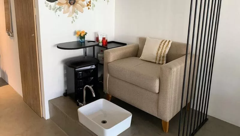 Además posee tres puestos de trabajo para peluquería y uno para manicuría, de manera tal que cuando una persona se está ocupando de su cabello puede embellecer mientras tanto sus manos o pies. Maquillaje y perfilado de cejas son otros de los servicios que también se brindan en el local.
