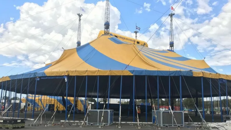La carpa principal, que fue montada el día de ayer, tiene 19 metros de altura, 51 metros de diámetro, y una capacidad para 2.600 personas. Para levantar esta carpa de 24 toneladas se requirió de 140 personas, y de mucha precisión ya que los estándares de seguridad son muy altos y los tiempos muy valiosos. Pero ahí no se termina todo, ya que falta la escenografía, el sonido y la iluminación, que requieren de otro proceso que finalizará a un día de comenzar el show.