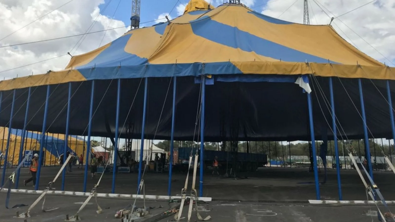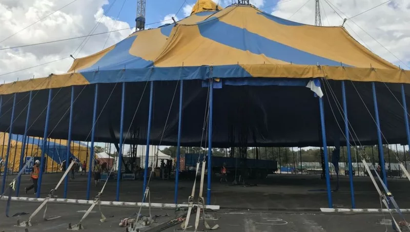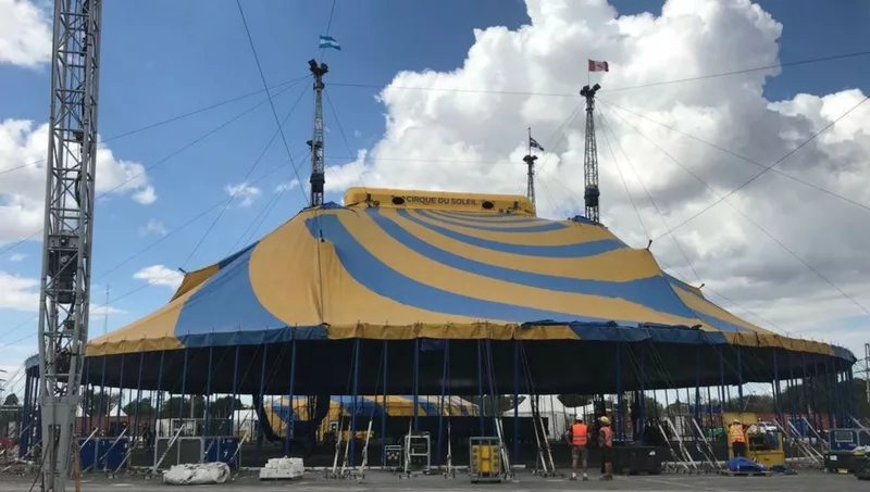 La función está -casi- por comenzar: se levanta la carpa principal de Cirque du Soleil en Córdoba