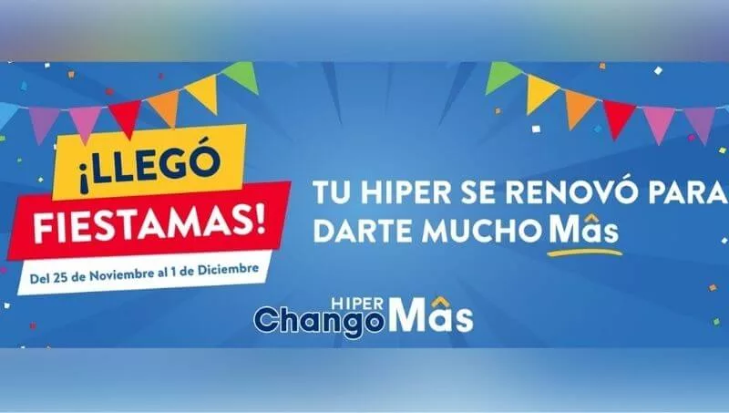 Como parte del festejo por el lanzamiento de Hiper ChangoMÁS en Río Cuarto, del 25 de noviembre al 01 de diciembre, se estará llevando adelante una fiesta de descuentos, sorpresas imperdibles y mucha diversión para toda la familia. Durante 7 días, los clientes podrán aprovechar descuentos únicos en un surtido de +1000 nuevos productos en góndola, artículos seleccionados de almacén a precios imperdibles a $ 39, $ 49, $ 59 y $ 69 y opciones de ahorro de 50%, 30% y 25% en la segunda unidad en distintas categorías, 30% en vinos y espumantes y ofertas especiales en el mercado de frescos, carnes y pañales. Además, como adelanto de las Fiestas, habrá descuentos en árboles de navidad, adornos, budines y pan dulces y muchas ofertas más.