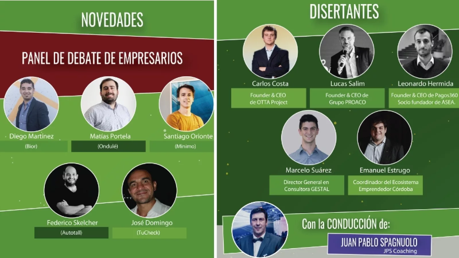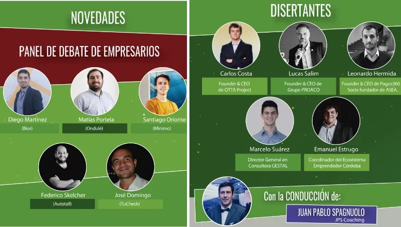 Los disertantes en esta octava edición serán: Lucas Salim (founder & CEO de Grupo Proaco); Carlos Costa (founder & CEO de OTTA Project); Leonardo Hermida (founder & CEO de Pagos360 - socio fundador de ASEA); Emanuel Estrugo (coordinador del Ecosistema Emprendedor Córdoba); Marcelo Suárez (director general en Consultora GESTAL).