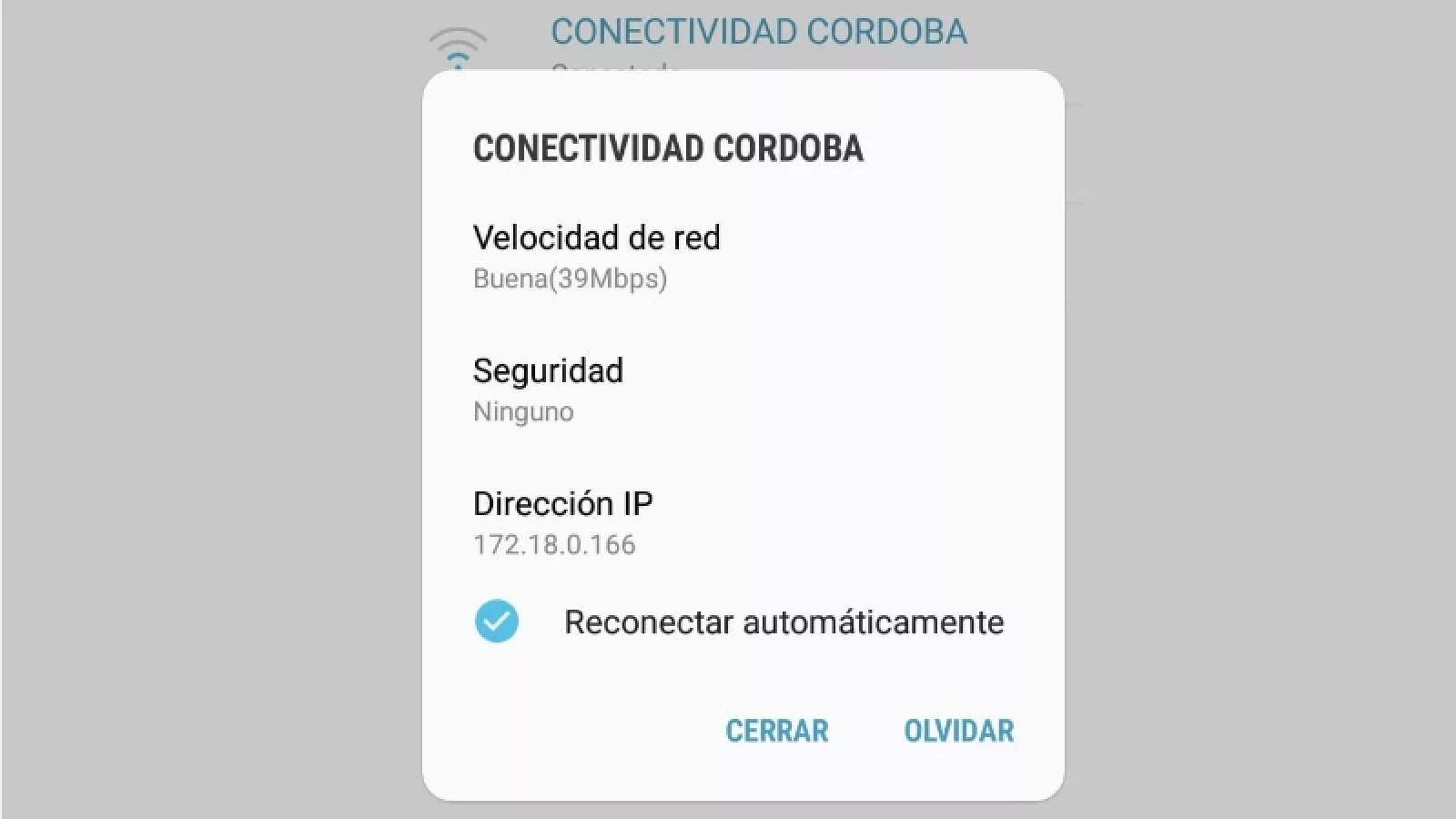 Como fui un día sábado alrededor de las 17 hs, había mucha gente en el lugar. Me conecté con mi celular (Samsung Galaxy J7 Neo) que reconoció la red “CONECTIVIDAD CÓRDOBA” y se activó rápidamente, marcando una velocidad “buena” (39Mbps). En el caso de la notebook, la conexión tardo un poco más, pero cuando lo hizo la velocidad seguía siendo la misma.