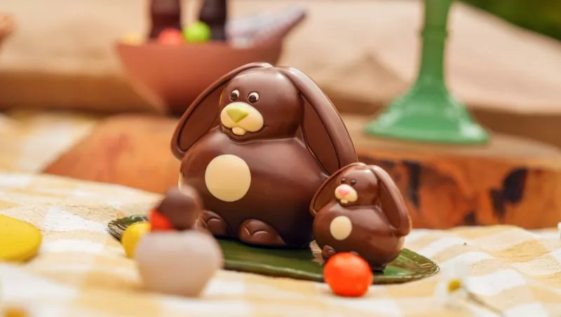 ¿Las grandes novedades de este año? La caja con cinco conejitos de chocolate con leche rellenos de dulce de leche y la rosca rellena con una irresistible crema de pistacho. Además, su colección clásica incluye opciones para todos los gustos, como los huevos Marroc, Nuicciola, Italianos con almendras, Animal Print, Chocolate Amargo, Pistacho, Sal y Caramelo, Sin Azúcar, y los tradicionales Conejos Panzón y Orejón.