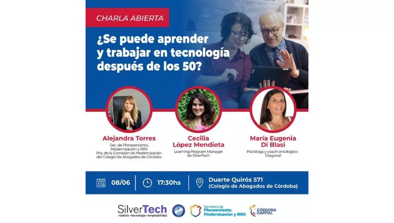 La charla contará con la participación de Alejandra Torres, secretaria de Planeamiento, Modernización y RRII de la Municipalidad de Córdoba; y Presidenta de la Comisión de Modernización del Colegio de Abogados de Córdoba. Disertarán acerca de la diversidad etaria y el edadismo las expertas de Silvertech, Cecilia Paula López Mendieta, Learning Program Manager de SilverTech; y María Eugenia Di Blasi, psicóloga y facilitadora de talleres sobre habilidades socioemocionales-laborales y diversidad e inclusión laboral.