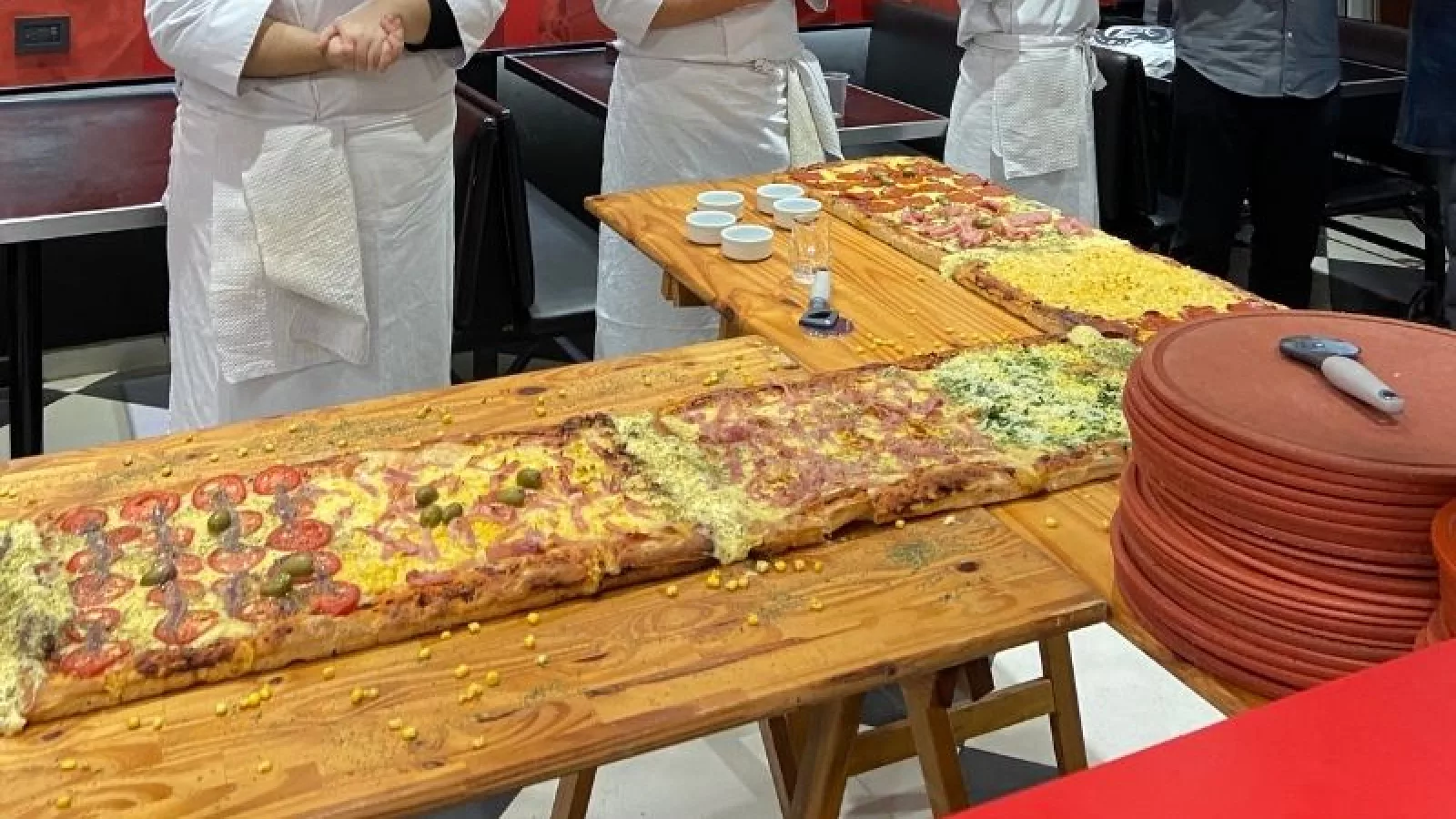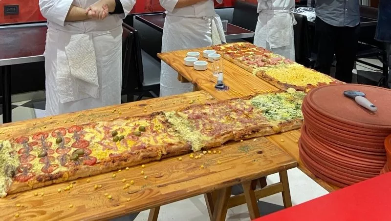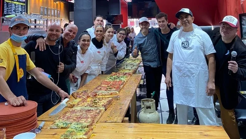 El maestro pizzero Walter Lazarte, junto al prestigioso chef Roal Zuzulich, Pablo Marcone (creador de la primera escuela de pizza) y alumnos de la escuela Celia fueron los encargados de hacer realidad este récord. Comenzaron a amasar a las 8 de la mañana para tener los 15 metros de pizza listos a las 12hs. Hubo entrega de placas, reconocimientos y mucha alegría.