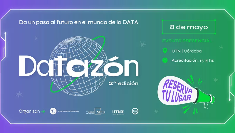 Organizado por Pi Data Strategy & Consulting, en conjunto con la Secretaría de Extensión Universitaria y la Secretaría de Asuntos Estudiantiles de UTN Córdoba, Datazón se realizará en la UTN el jueves 8 de mayo a partir de las 13:15 horas, con entrada gratuita a cambio de una donación para el Banco de Alimentos.