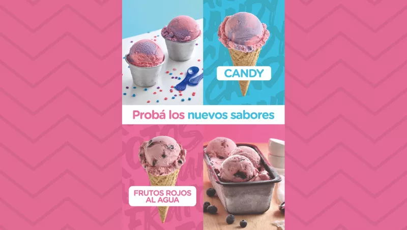 Con el objetivo final de conseguir que todos sus clientes vivan momentos felices mientras consumen sus helados, Grido apuesta por dos nuevos sabores: una nueva opción al agua, frutos rojos; y candy es un sabor suave, lleno de colores e inspirado en el sabor del algodón de azúcar.