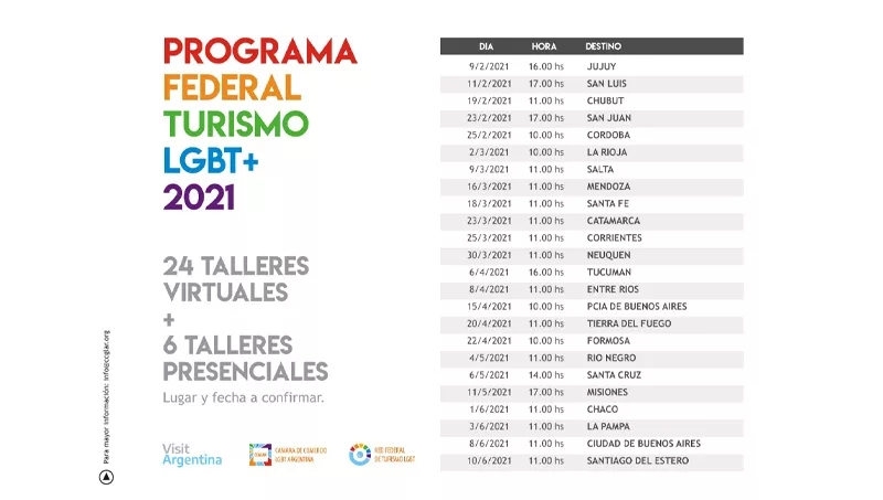 Esta primera etapa del programa comenzará con una jornada gratuita de sensibilización y capacitación virtual sobre Turismo LGBTQ+, destinada a prestadores/as de servicios turísticos, y personas vinculadas directa o indirectamente con el sector.