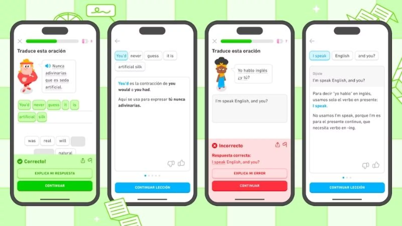 Explica mi respuesta, su popular función de retroalimentación que anteriormente solo estaba disponible para suscriptores. Ahora, todos los usuarios de Duolingo podrán conocer el por qué detrás de las reglas, excepciones y áreas de oportunidad en sus lecciones para ganar mayor seguridad y precisión al practicar un nuevo idioma.