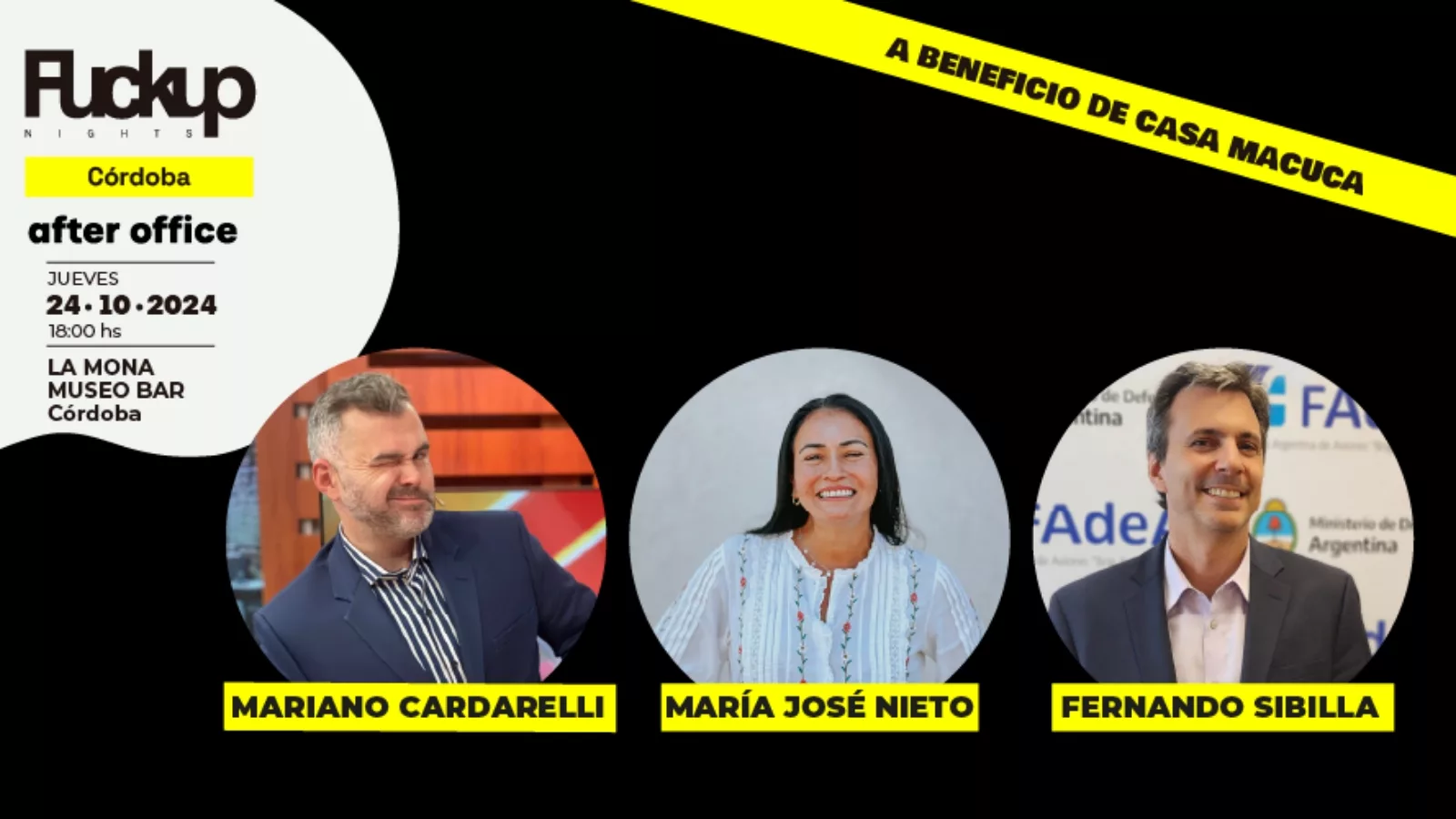 Cabe recordar que FuckUp Nights Córdoba es un evento a beneficio, donde todo lo recaudado va directamente a la ONG Casa Macuca.