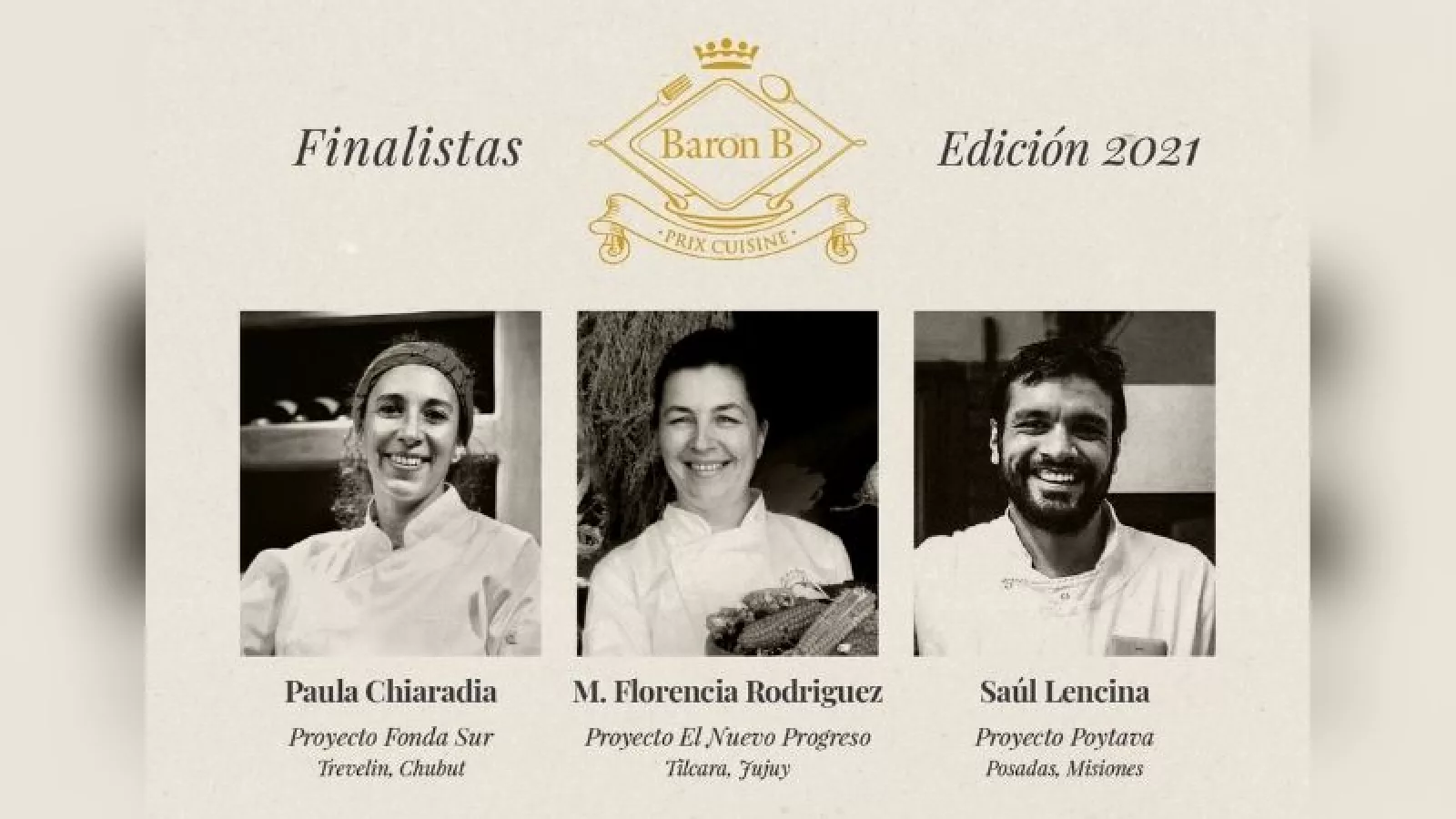 “Estamos muy contentos por la calidad de proyectos que pudimos conocer a través de esta nueva convocatoria de Baron B. Es un orgullo poder mostrar la diversidad que tiene la cocina argentina representada en estos tres finalistas que muestran la cocina y el trabajo en sintonía con el medio ambiente que se viene desarrollando en Tilcara, Trevelin y Posadas”, comentó Mauro Colagreco.