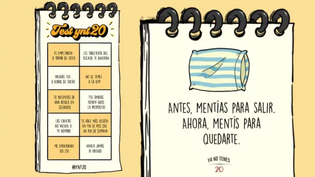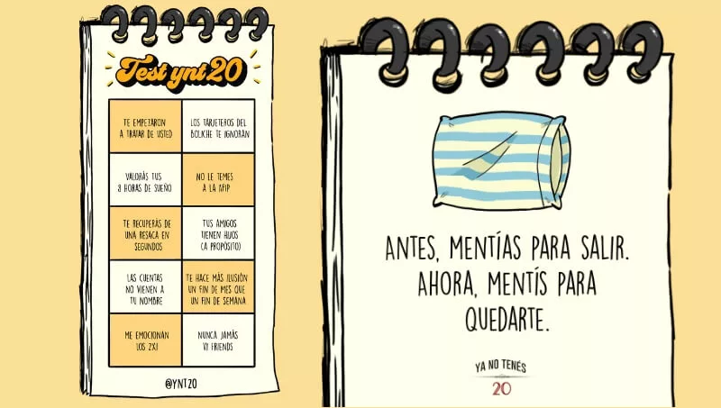 El concepto de la página ya es conocido: Una frase y una ilustración que nos interpela con nuestra vida adulta como, por ejemplo, "Antes mentías para salir, ahora mentís para quedarte".